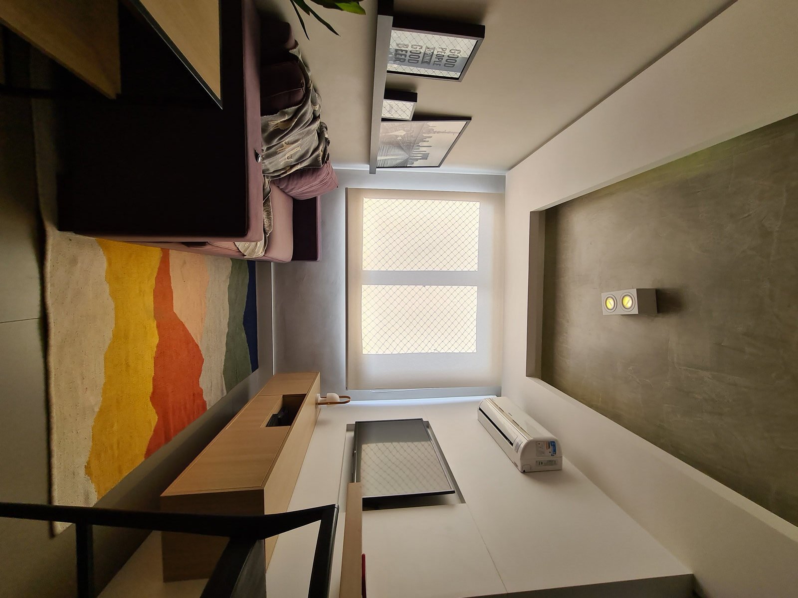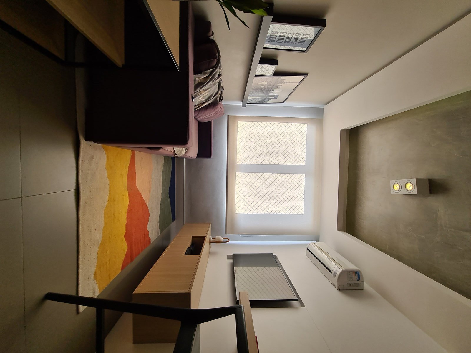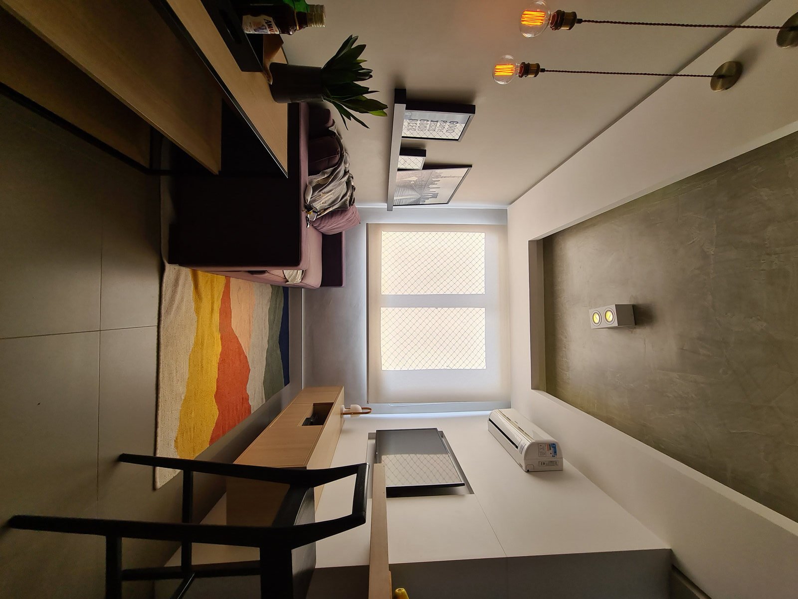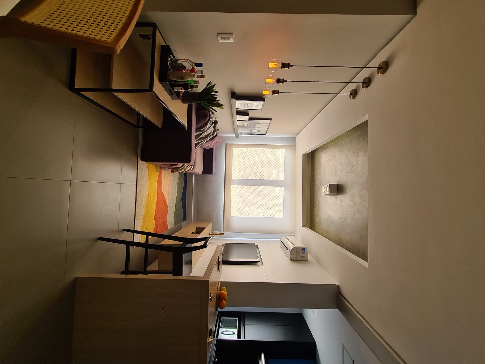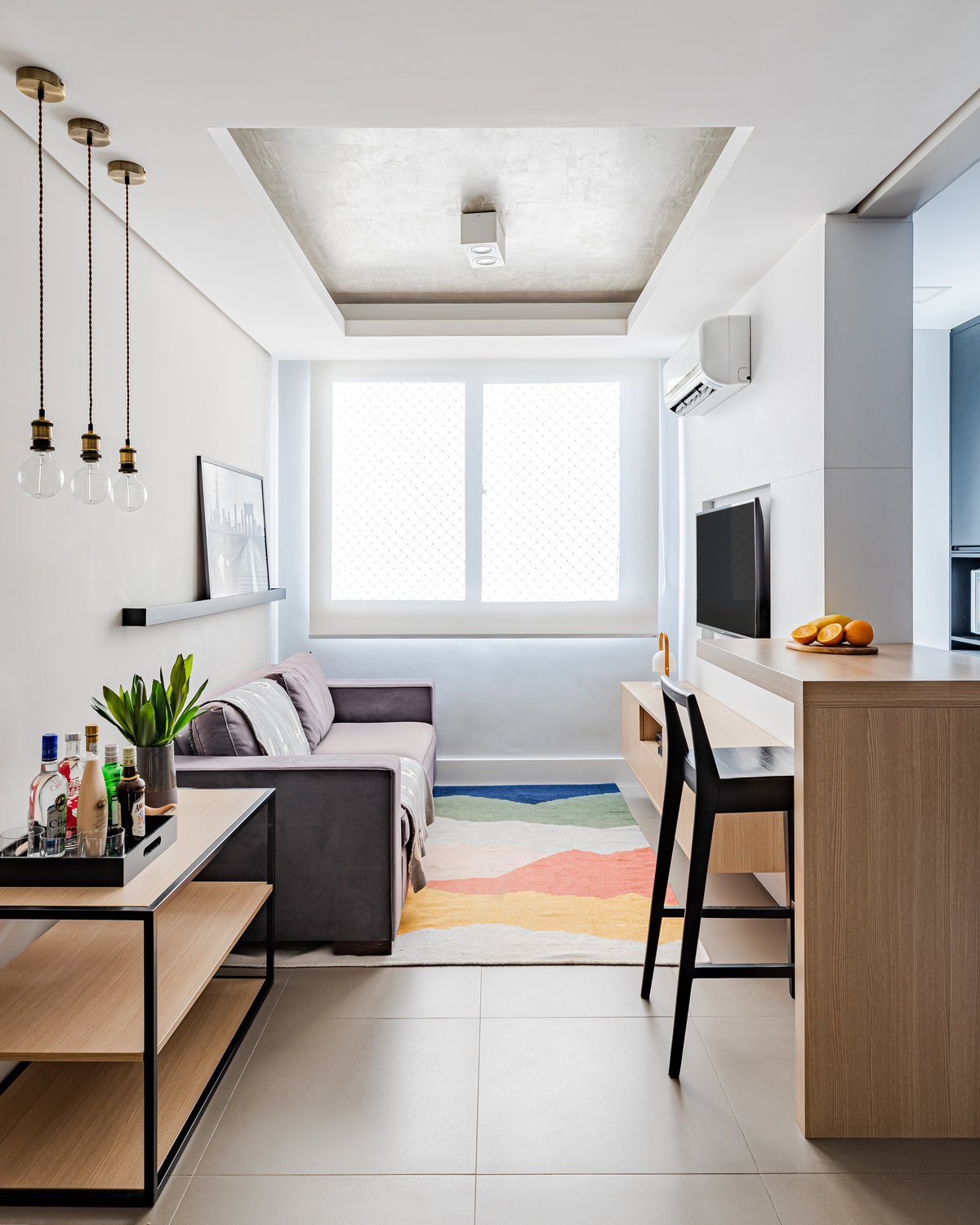 Destaque para o tapete, que traz em sua composição todo o mix de cores que o espaço pedia, unindo os elementos e trazendo vida ao ambiente.